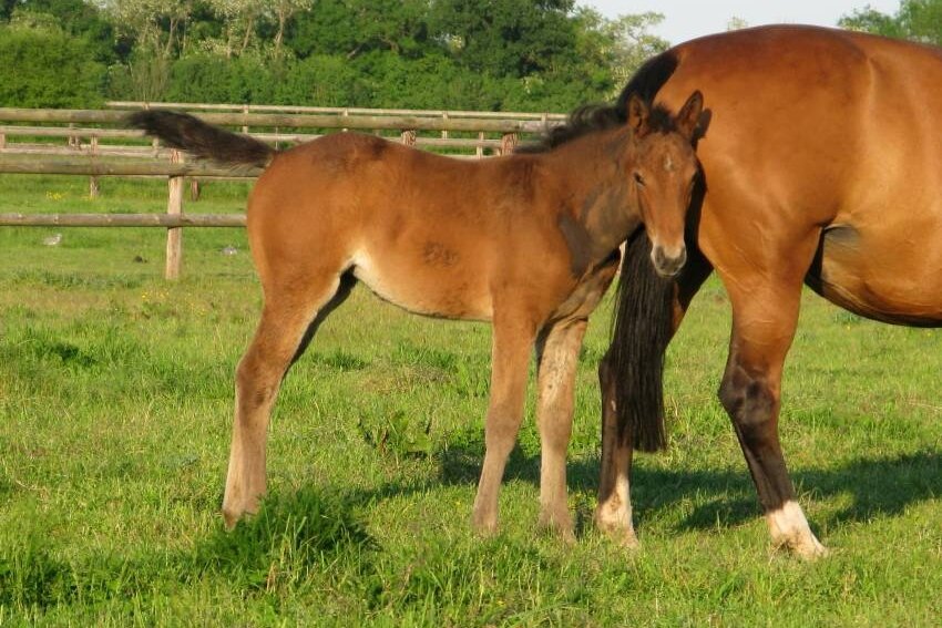Lors de son année de 6 ans, l'épidémie de Covid stoppant la saison de compétitions, nous décidons de la mettre à la reproduction. Cette fille d'Aventure avec Ernest, pur SF, formidable compétiteur durant un nombre d'années record, de 4 à 19 ans, donne naissance à plusieurs poulains :